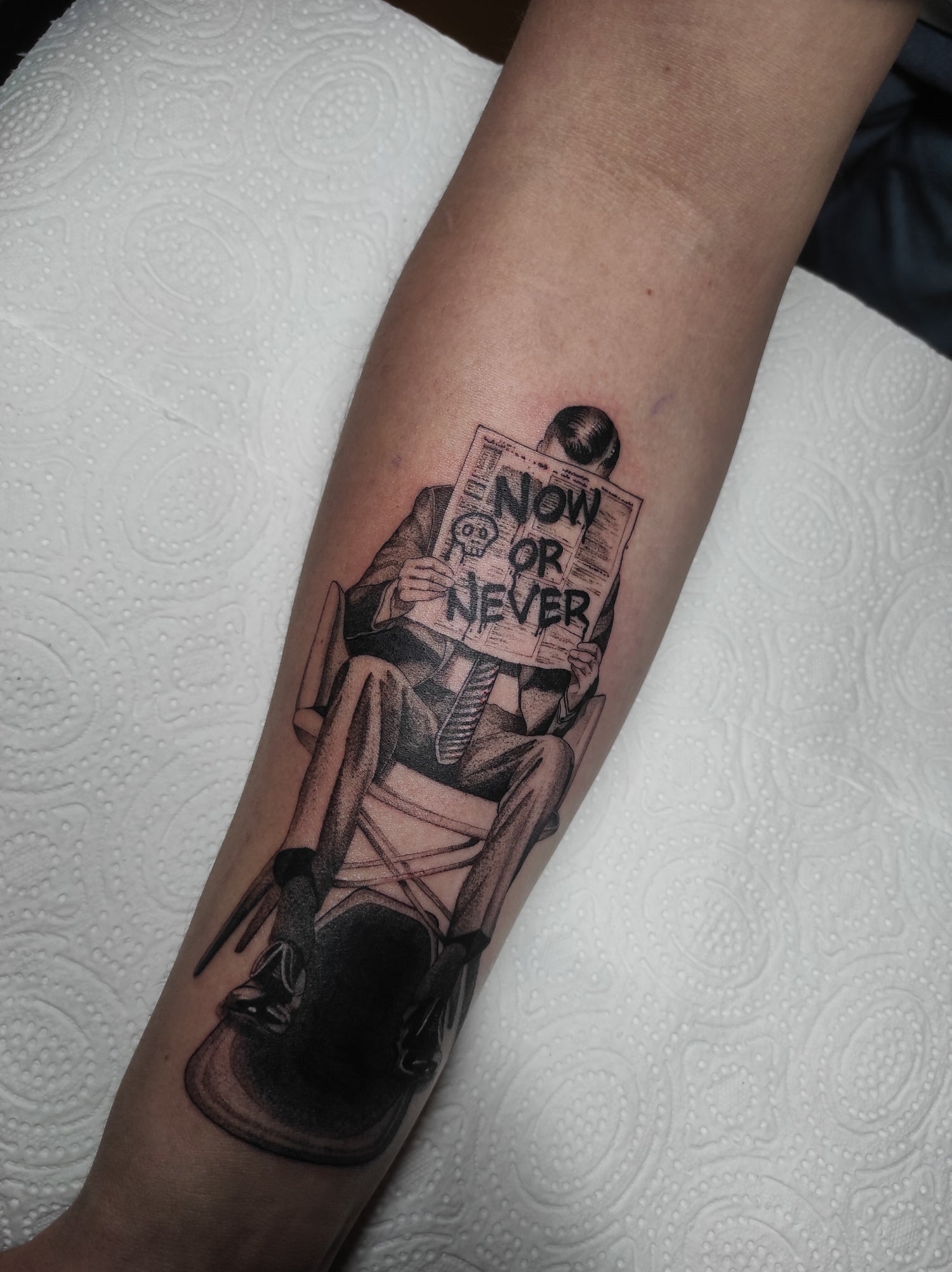 De meeste mensen denken bij fineline aan quotes of teksten, maar je ziet eigenlijk alles wel voorbijkomen. Fineline kan ook grafisch zijn, maar wat we tegenwoordig veel zien is micro-realisme. Alles wordt dan gezet met een extreem dunne naald. Fineline is complexer dan mensen denken, doordat je een single needle gebruikt, is er vrijwel geen ruimte om een fout te maken of aan te passen.