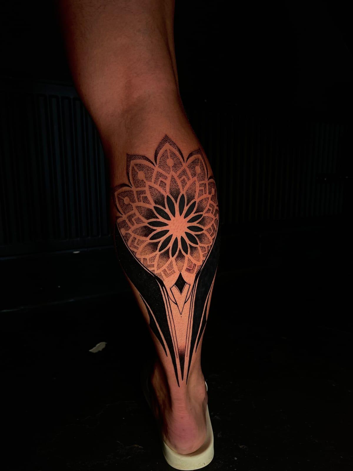 Dotwork bestaat soms wel uit duizenden kleine stipjes die samen een vorm maken en zijn vaak onderdeel van een geometrische tattoo of mandala. We zien veel geometrics en mandala’s op schouders, knieën, knieholtes en oksels voorbijkomen, vanwege de rondingen van het lichaam geven ze een interessant perspectief.